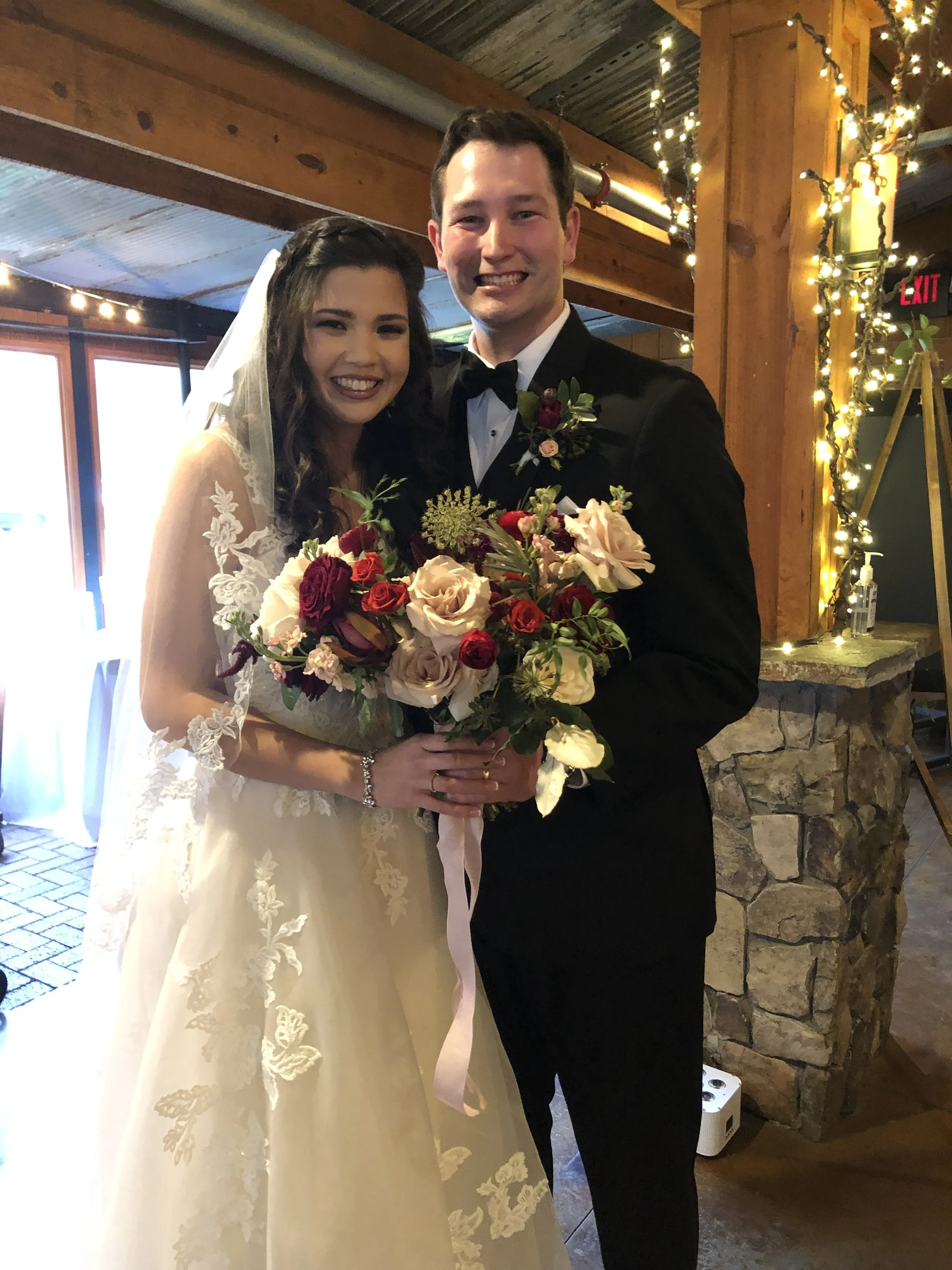 Just two days before their wedding, the minister working with this bride and groom called me saying she had tested positive for COVID-19, and asked if would be able to help them. Megan and Corey are a lovely couple, and I am honored that I was able to step in and perform their wedding rites at the beautiful Pavilion at the Angus Barn.